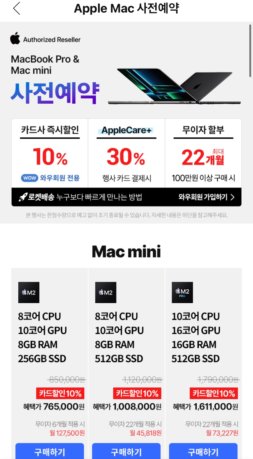 맥북프로14 m2, 맥북프로16 m2, 와 맥미니 m2의 사전예약이 시작되었어요.