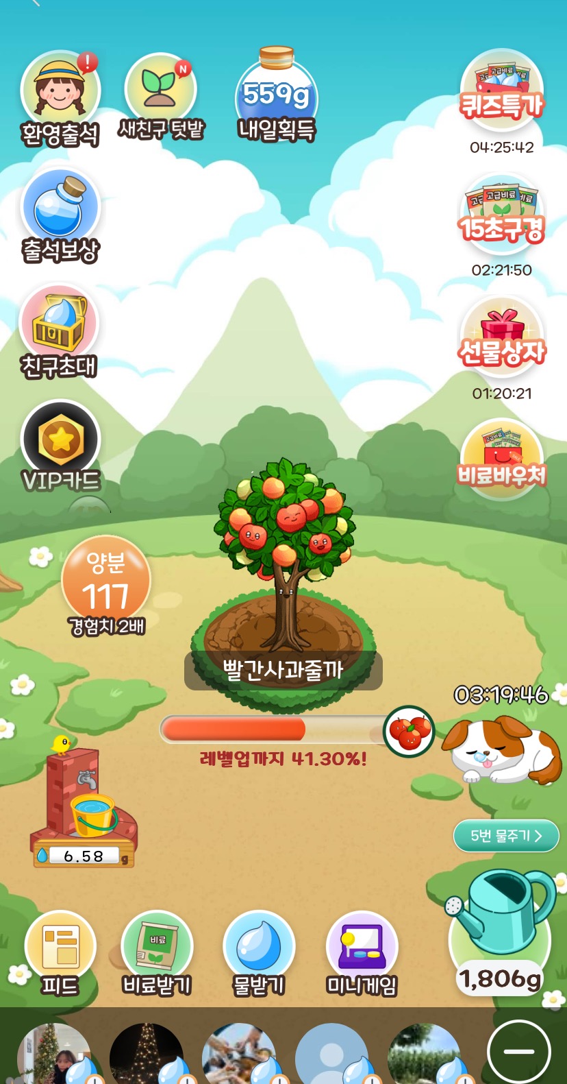 위에 미션을 해도 고급비료는 잘 채워지지 않아요.