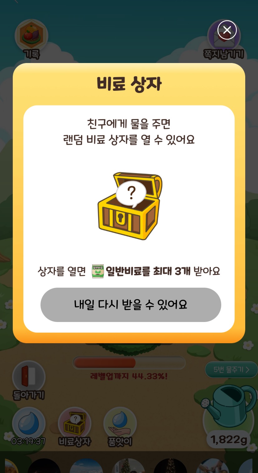 비료상자도 하루에한번 오픈가능합니다.