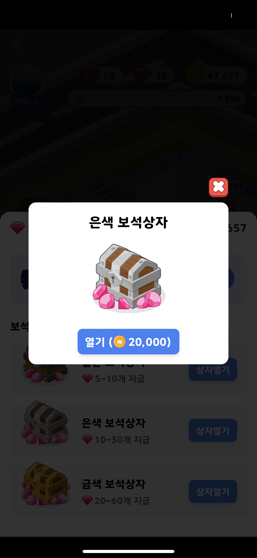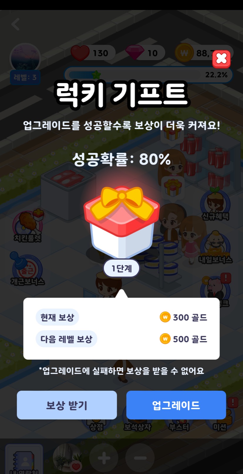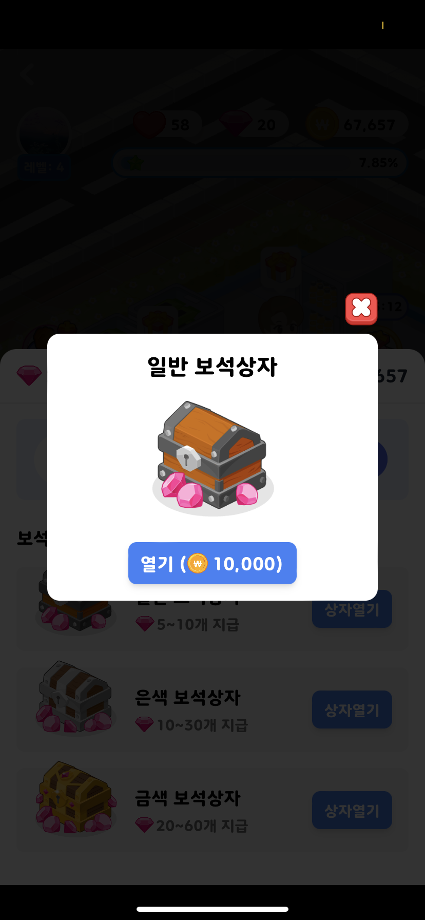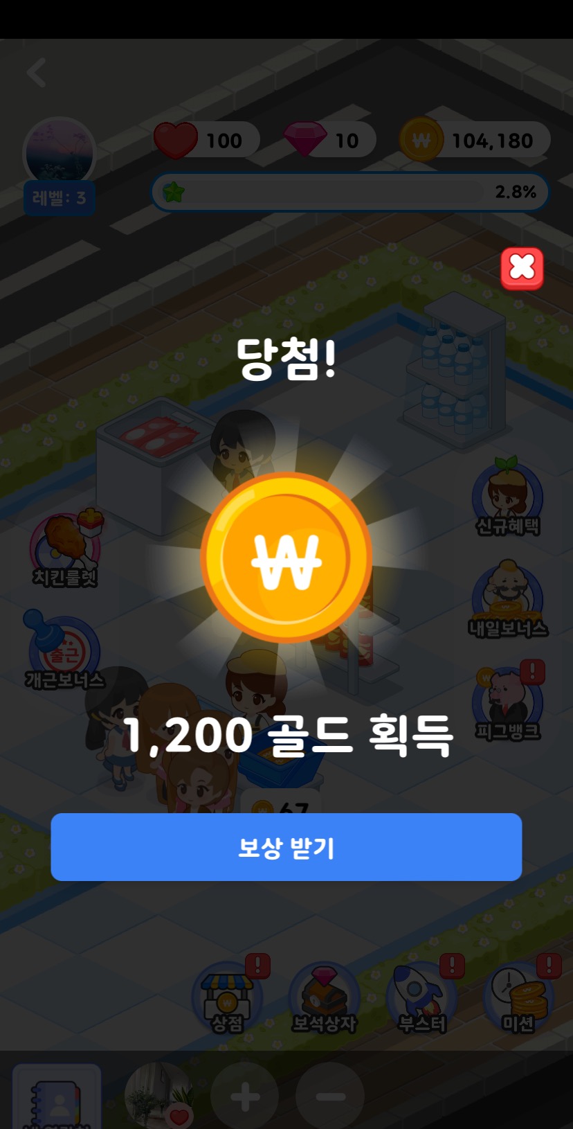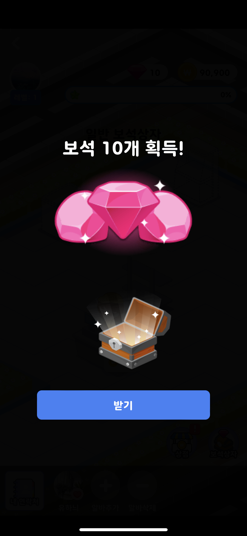 왜냐하면 이 게임 시스템자체가 마트판매로 돈을 벌어서 그 돈으로 보석상자를 구입합니다.