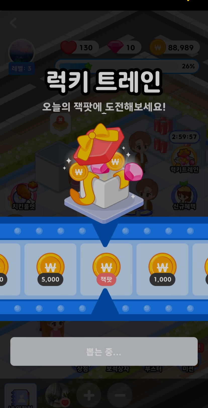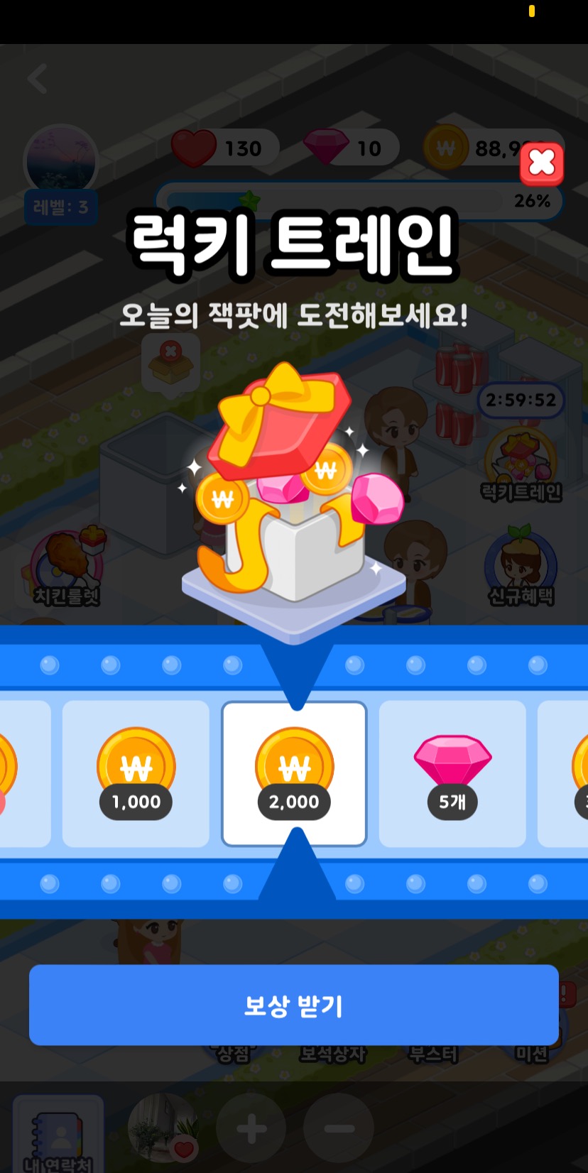 이건 럭키트레인이라고 해서 여러가지 상품을 랜덤뽑기처럼 보상으로 줍니다!