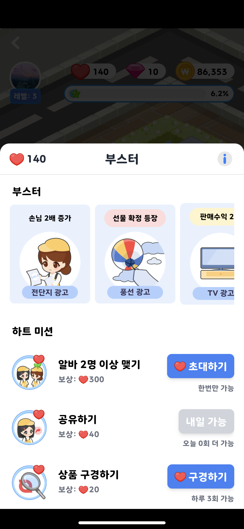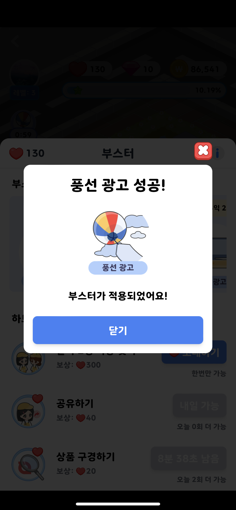 그 하트들로 부스터를 써서 돈을 많이 모은다