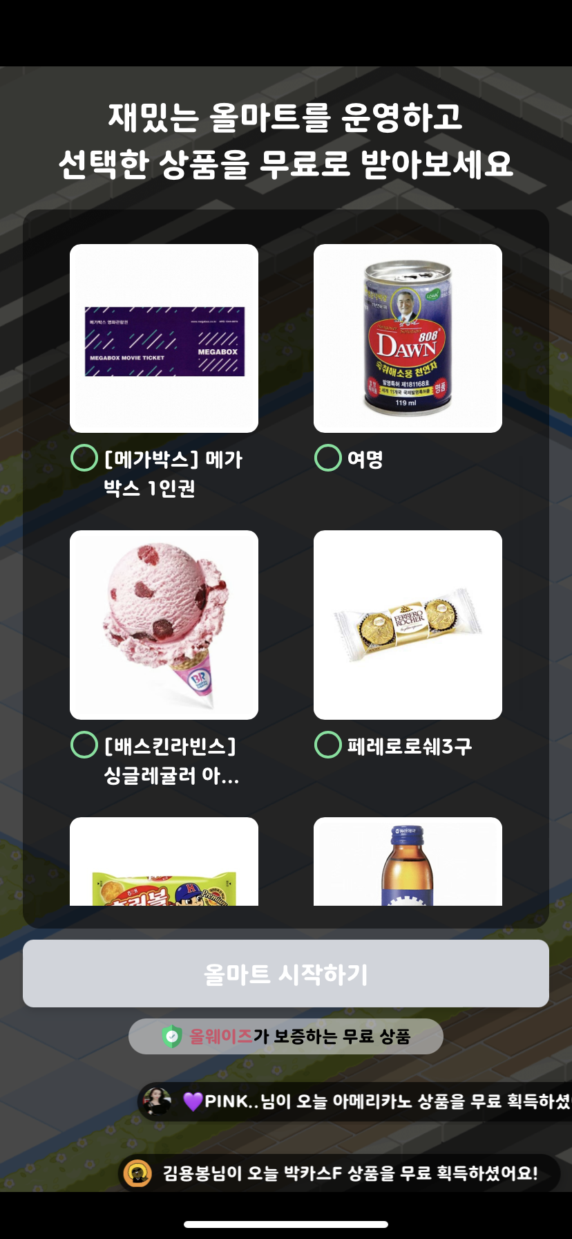 [올마트] 마트를 운영하면 무료 기프티콘을 받아요!
