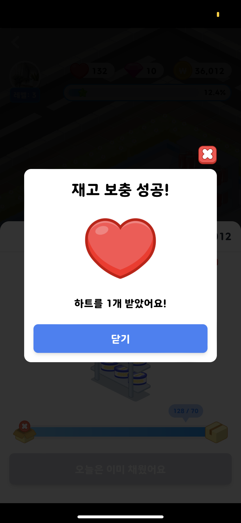 재고를 채워주고 하트받기인데 총 3번 채워줄수 있어요.