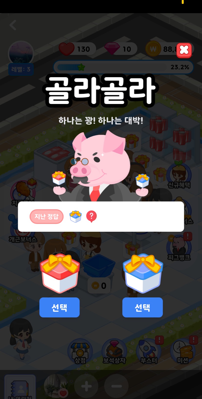 재화가 쌓이고 그 돈으로 보석상자 열어서 보석모아서 기프티콘으로 교체!