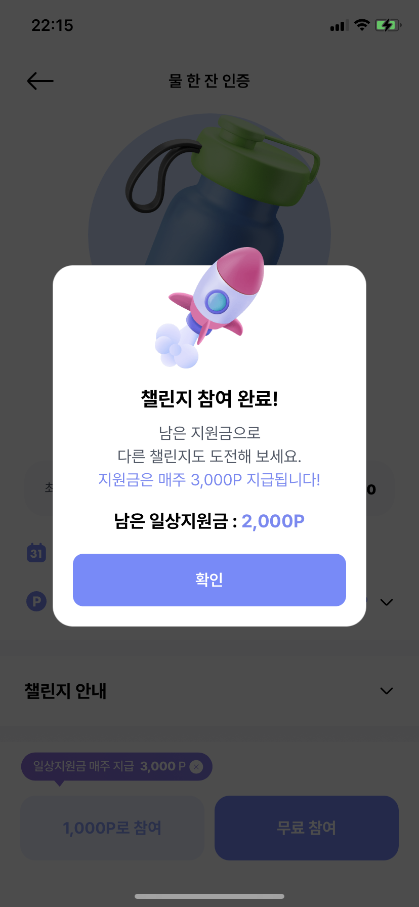 3000포인트로 챌린지 3개를 매주 마다 무료로 시작 할 수 있고요