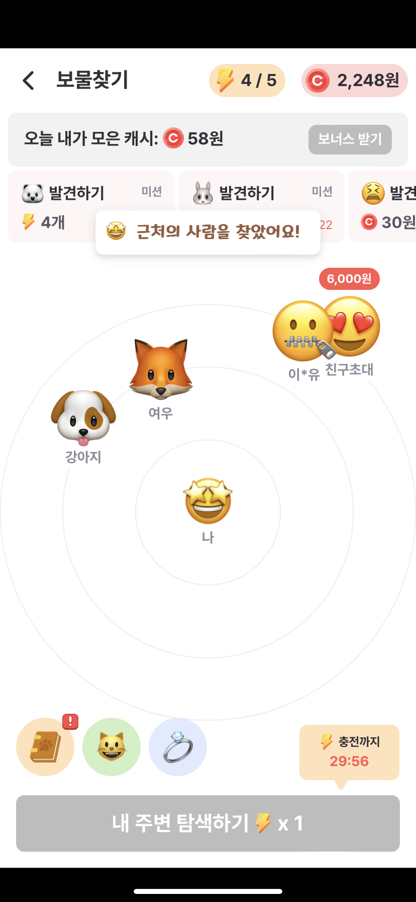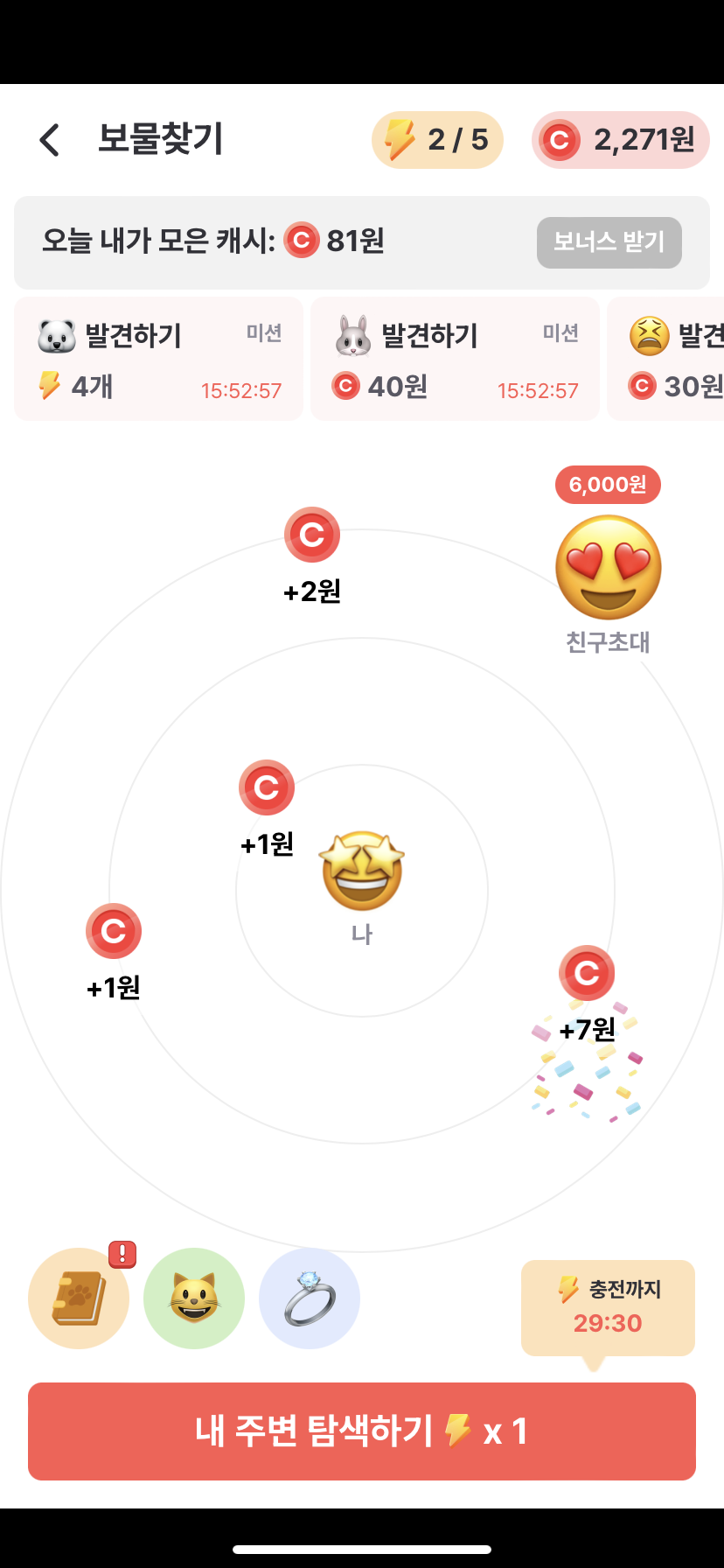 저 번개 아이콘이 5개가 완충인데, 30분마다 채워지는거 같아요 1개씩!