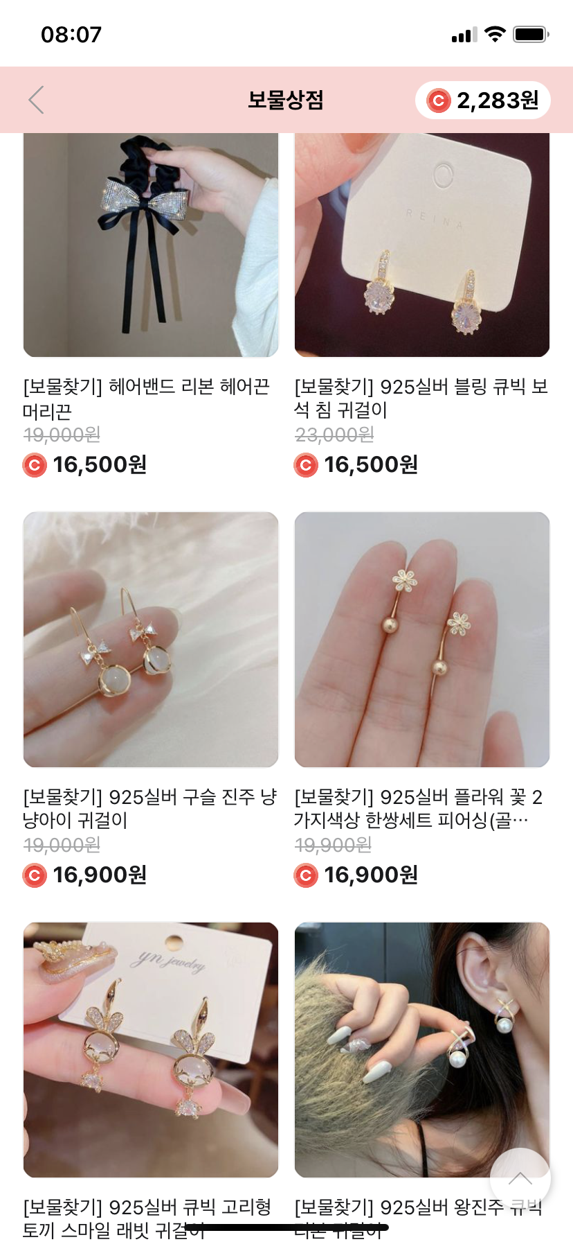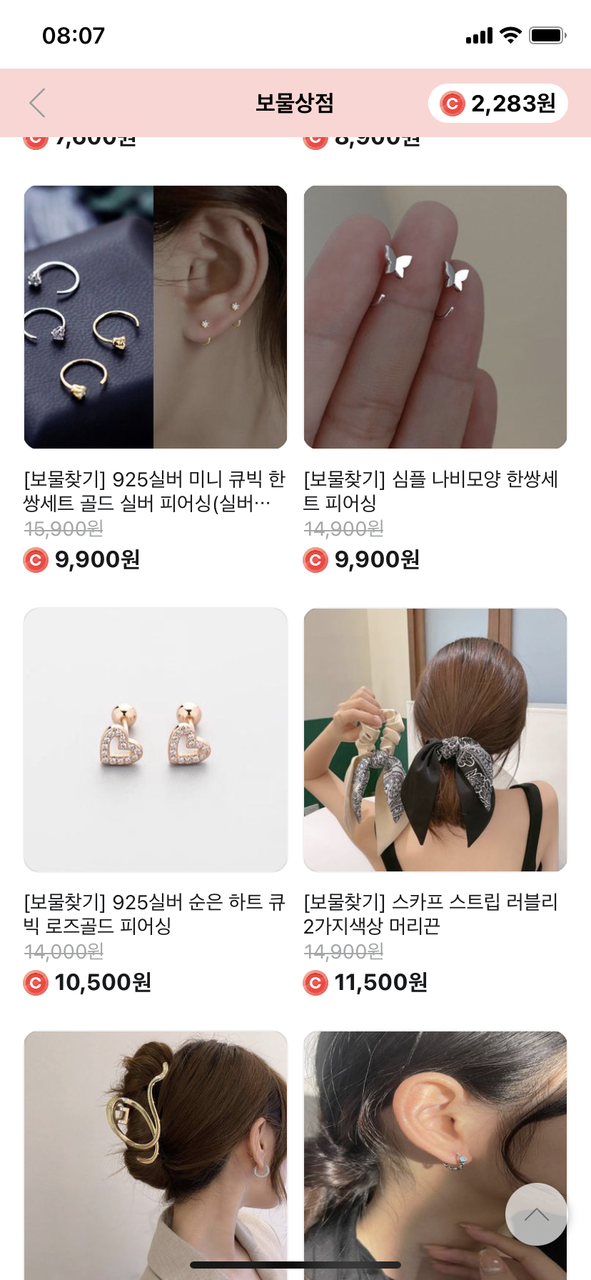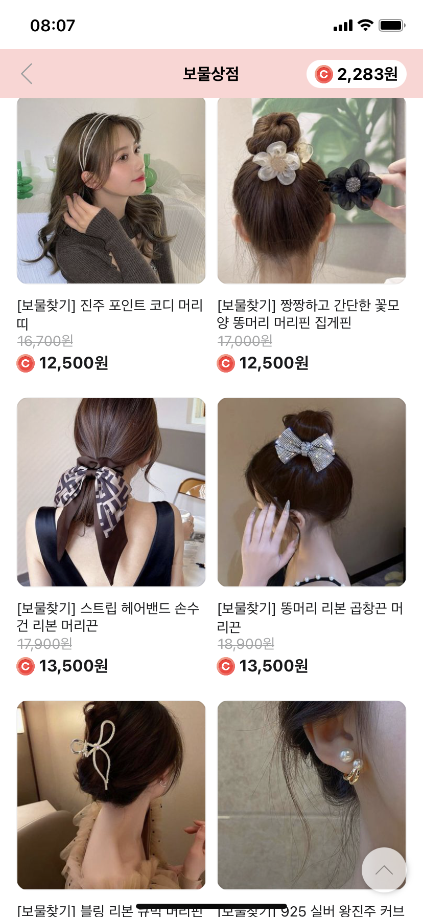 머리끈, 머리핀, 머리띠, 귀걸이같은 악세사리를 포인트로 교환해서 받는건데,