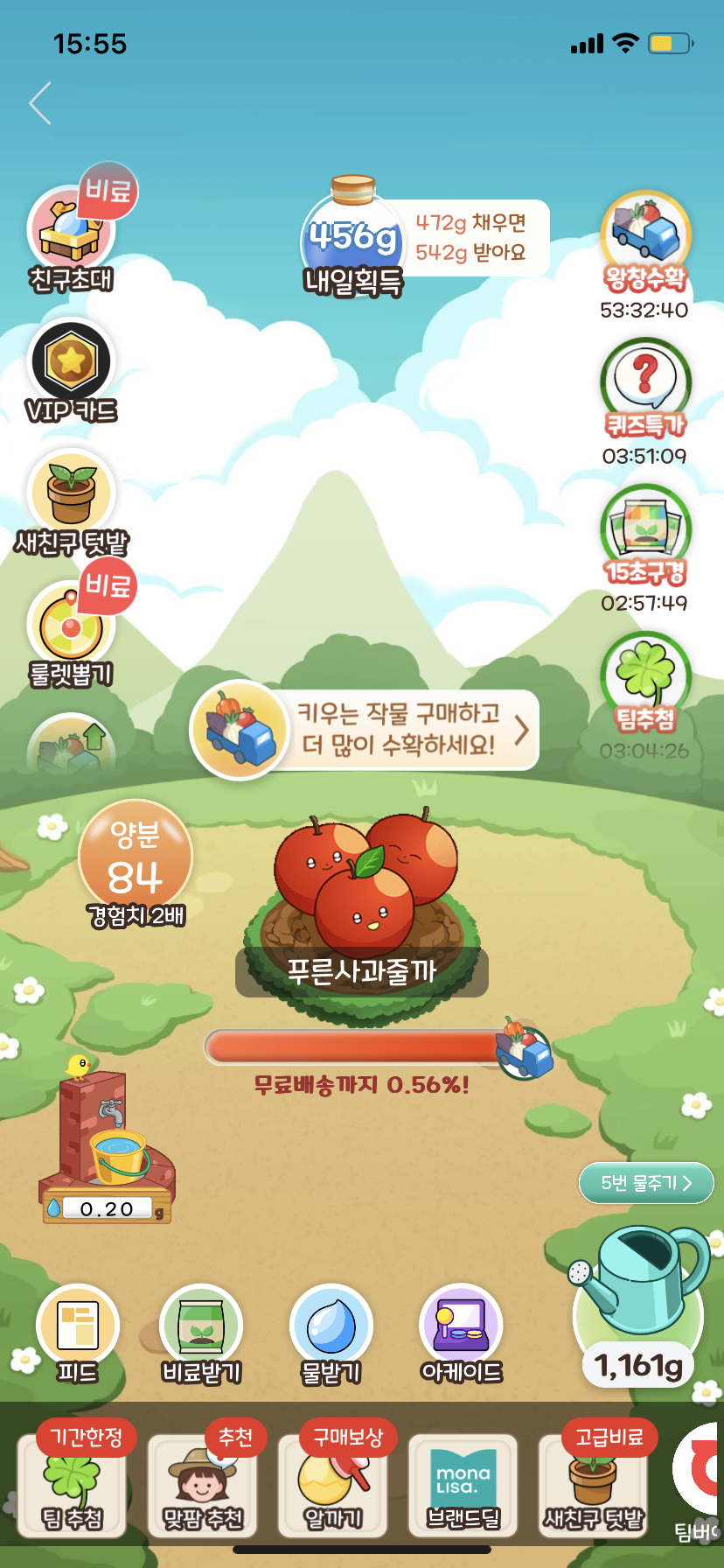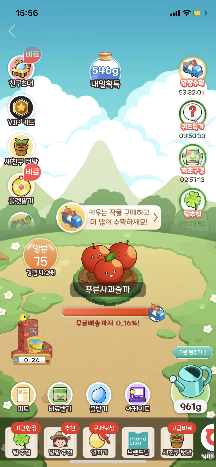 맞팜초대, 물을 주기도하고 비료를 주기도하고, 원하시는걸로 아무거나링크 타고 들어가시면됩니다!