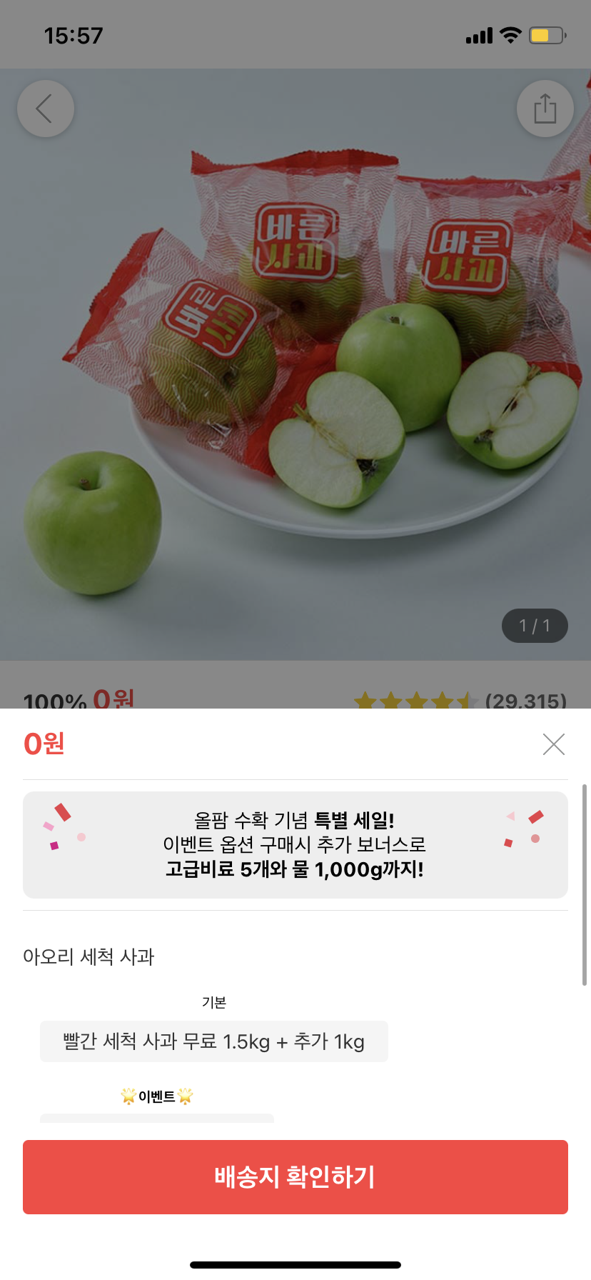 전 아오리보단 홍로파라서 빨간 세척사과로 신청!
