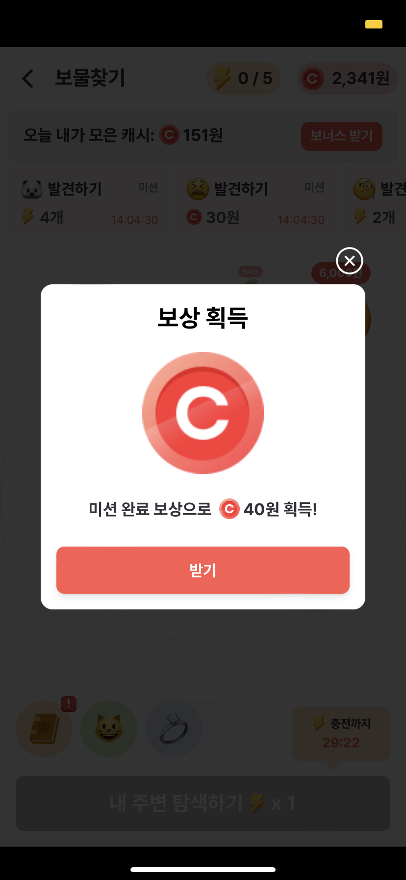 랜덤으로 뜨는 아이콘중에 미션 아이콘이 뜨면 역시나 보너스 포인트 획득!