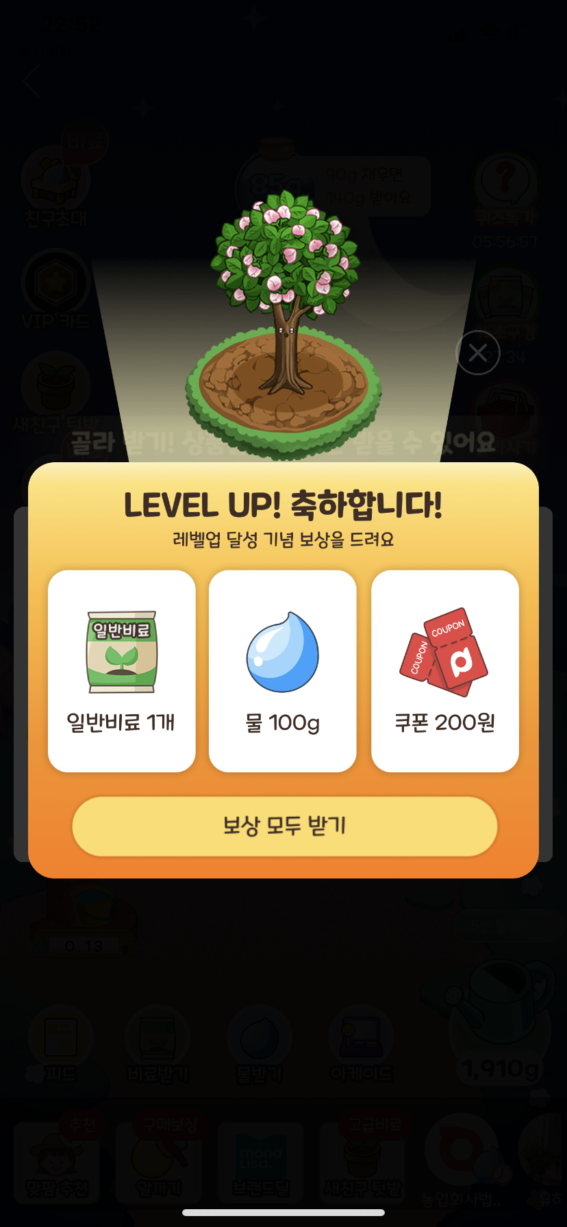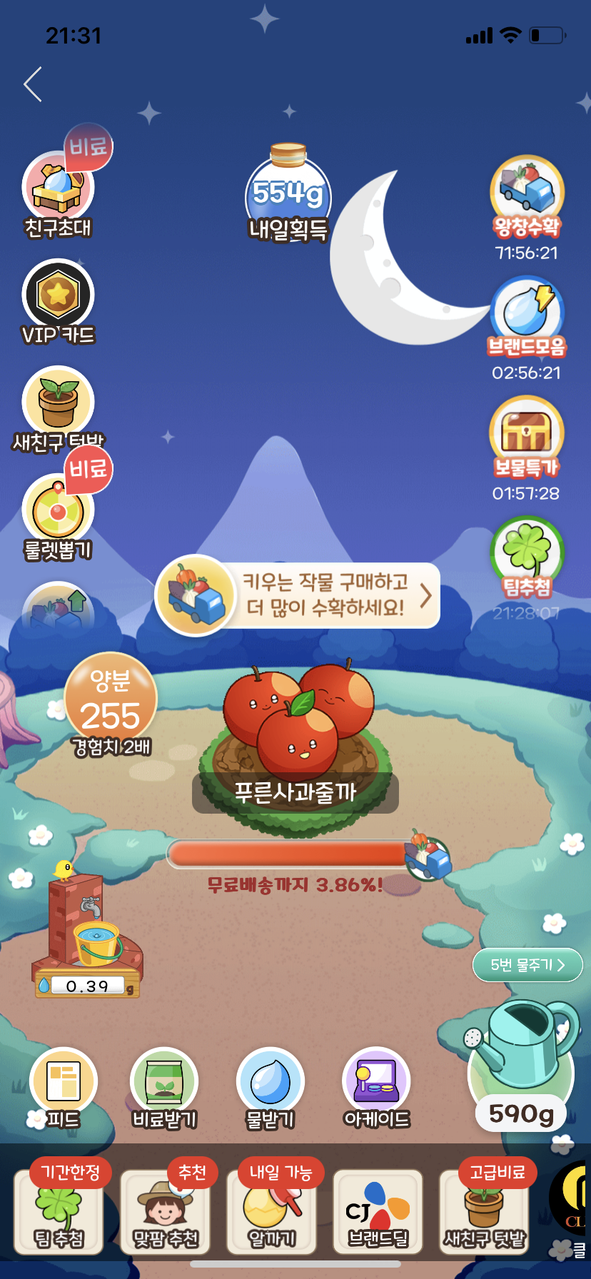 이게 뭔소리냐면 수확량증가라고해서 수확하는 기간내 새친구2명을 초대하면 수확량을 추가해서 보내줍니다.