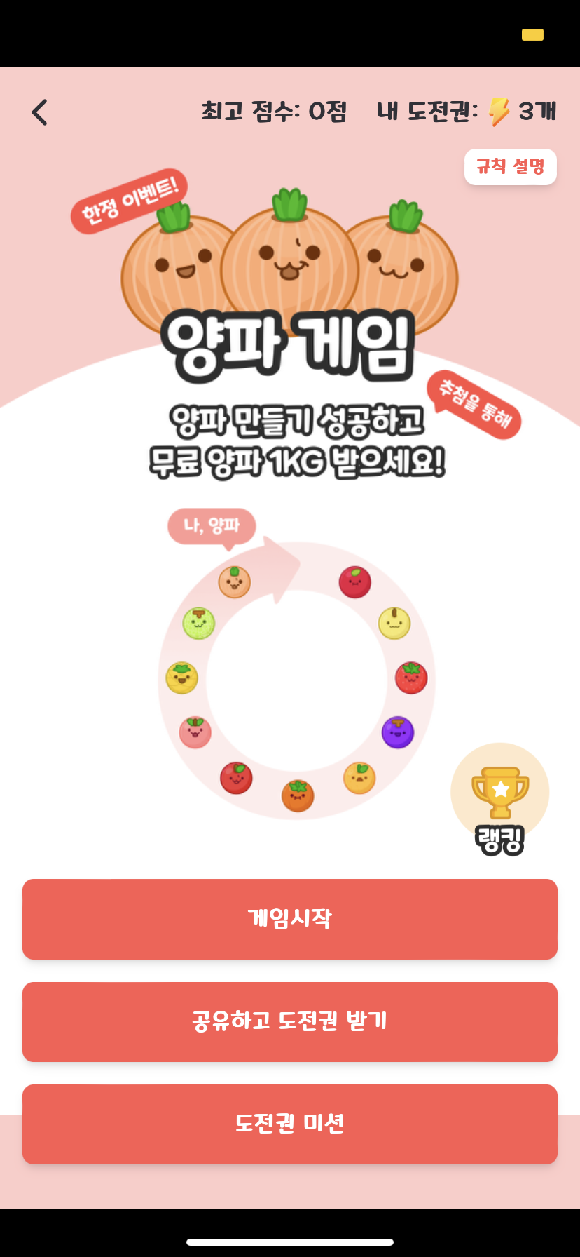 [양파게임] 무료 양파 1Kg에 도전하세요!