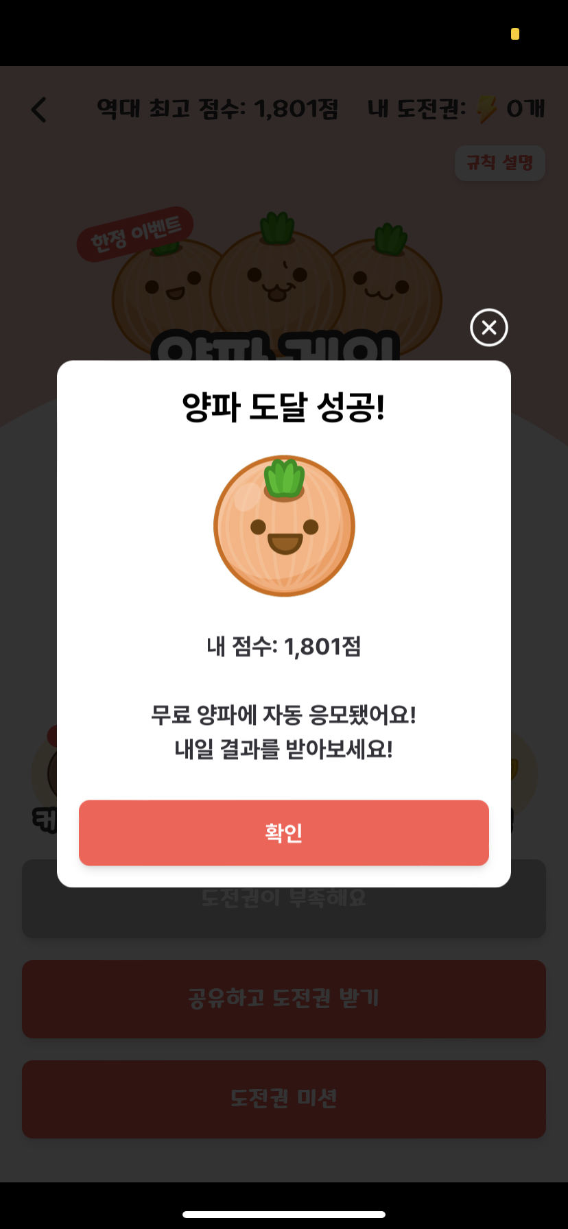 양파만들기에 성공하기만하면 자동 응모하게 되고