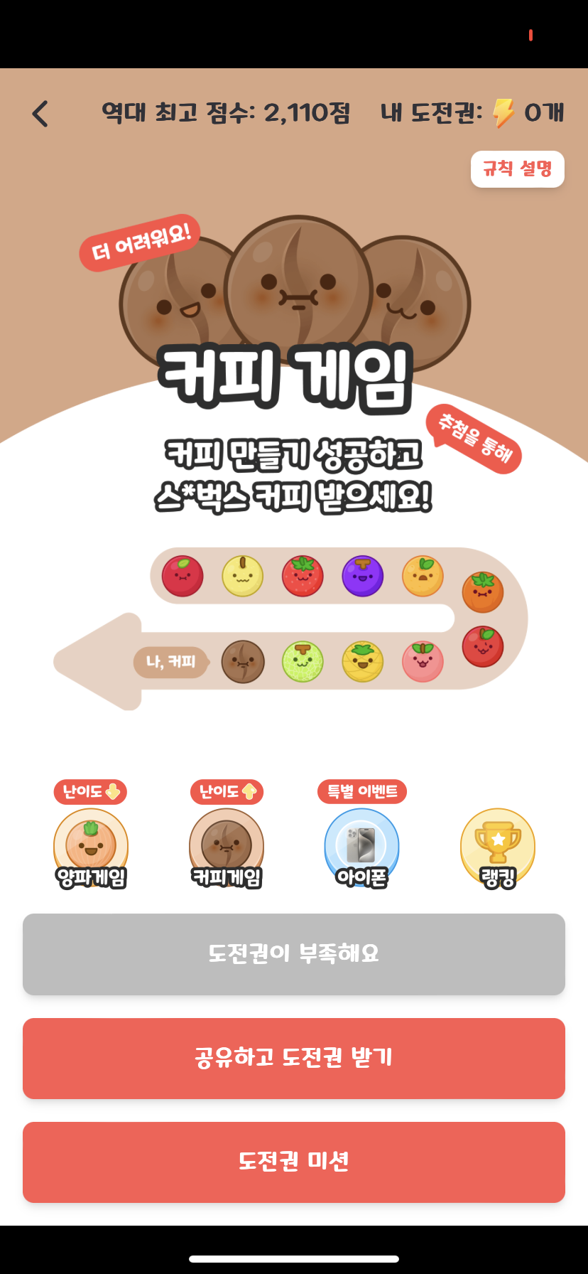 근데 커피게임은 양파게임성공후에 도전할수 있게되어있어서