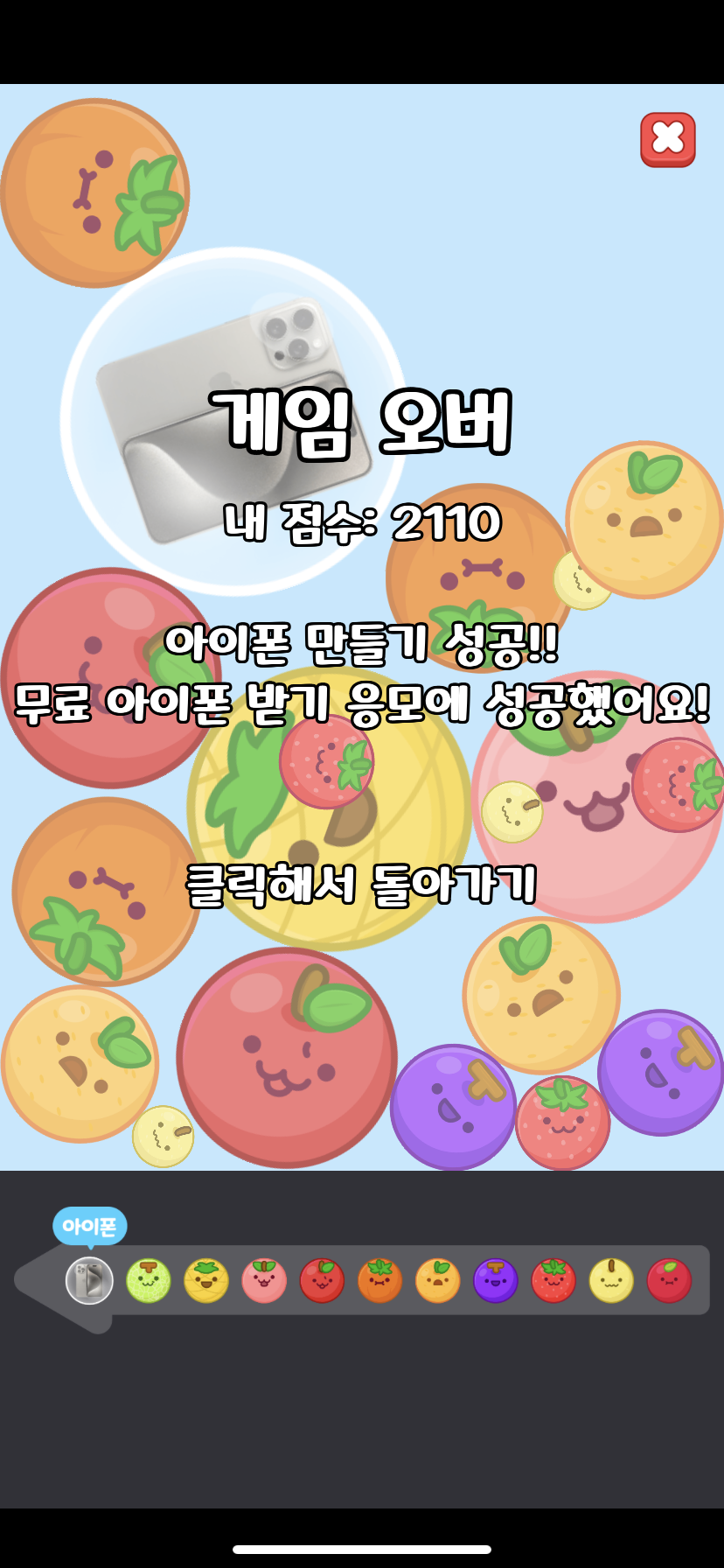 딸기가 안나오면? 작은사과랑 배를 계속 붙여서 딸기를 만들어야 겠죠?