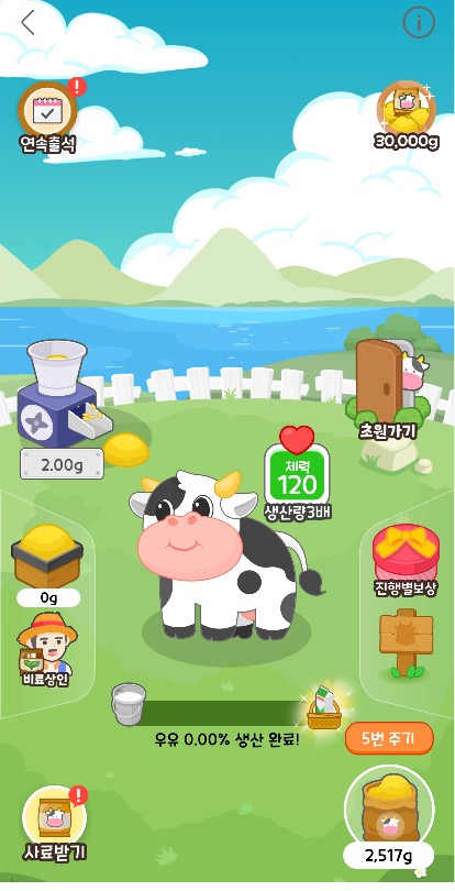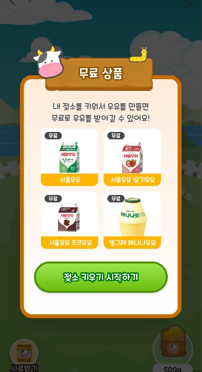 소를 길러서 우유를 모으면, 실제 우유를 무료로 드려요. 친구랑 같이 모으면 더 빨리 모을 수 있어요.
